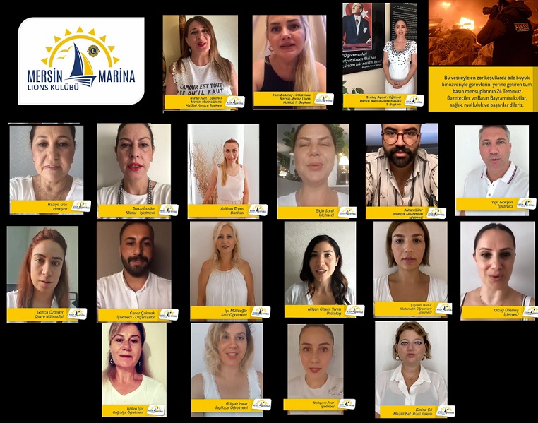 Video da ayrıca çeşitli meslek gruplarından isimlerin yer aldığı Mersin Marina Lions Kulübü Üyeleri de basının önemine dikkat çeken ifadelerle kutlama mesajı çektiler.