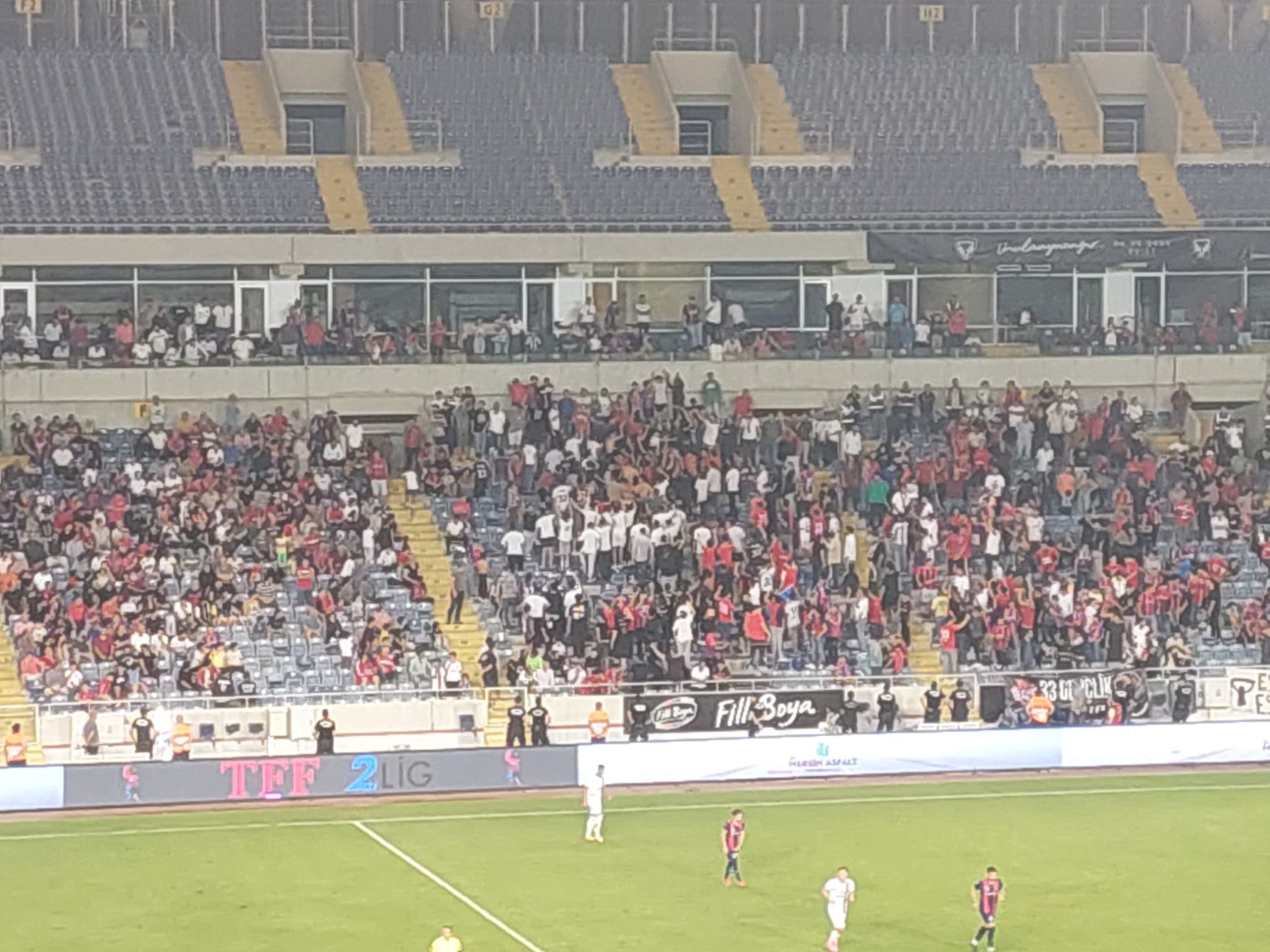 karşısında vasat bir oyun sergileyen Mersin ekibi, taraftarının sırtını dönerek maçı izlemesi