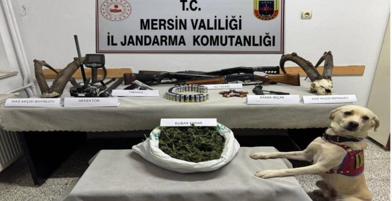 (20) adet kenevir tohumu, (5) adet av tüfeği, (2) adet tabanca, (2) adet dedektör, (3) adet yaban keçisi