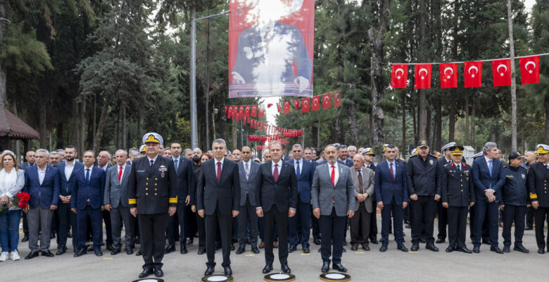 Törende; Vali Toros, Tuğamiral Karataş, Başkan Seçer ve Türkiye Harp Malulü Gaziler, Şehit Dul ve Yetimleri Derneği Mersin Şube Başkanı Şahin tarafından Şehitlik Anıtı’na çelenkler sunuldu. Çelenk sunumunun ardından saygı duruşunda bulunuldu ve saygı atışı yapıldı. Daha sonra İstiklâl Marşı eşliğinde Şanlı Bayrak göndere çekildi. Bir öğrenci tarafından okunan şiirin ardından ise Türkiye Harp Malulü Gaziler, Şehit, Dul ve Yetimleri Derneği Mersin Şube Başkanı Halit Şahin bir konuşma yaptı. Akdeniz Bölge ve Garnizon Komutanlığı’ndan Teğmen Hüseyin Yılgın da günün anlam ve önemini belirten bir konuşma gerçekleştirdikten sonra, Vali Toros tarafından Şehitlik Defteri imzalandı.